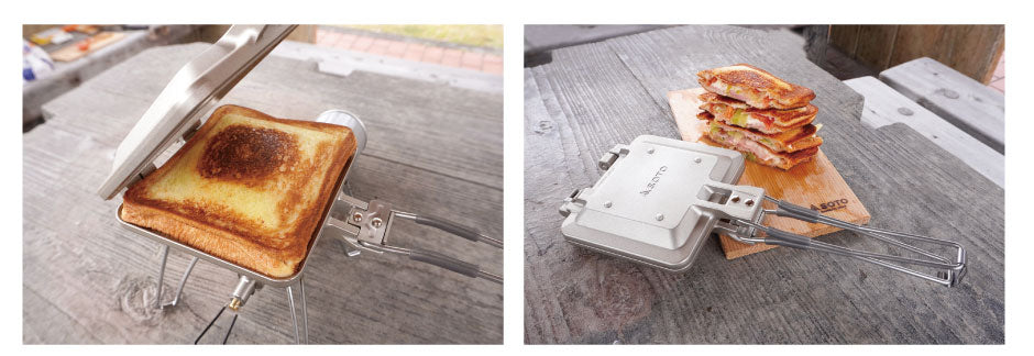 コンパクトに折り畳みができるアウトドア用ホットサンドメーカー